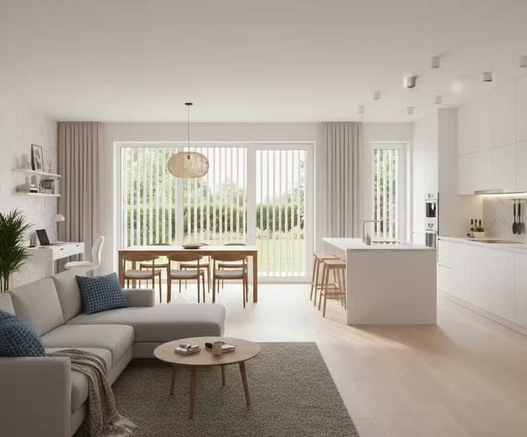 Salon + Aneks Kuchenny z bezpośrednim wyjściem do ogrodu 27,02 m2
